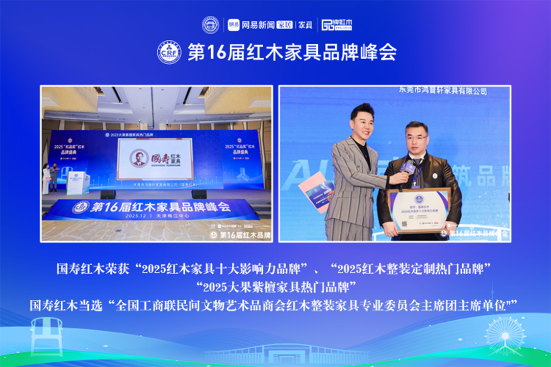 1月4日,在G20峰会举办地——杭州国际博览中心举行的第七届中国红木家具品牌大会上,陈国寿荣获“中国艺术红木传承人”称号,国寿红木蝉联“中国红木家具十大影响力品牌”,这是大会对陈国寿先生和国寿红木品牌成就的肯定。同时,站在G20峰会会场这个同样是国际性的舞台,国寿红木以一场《中国新明式红木家具——国寿·世外桃源品牌发布会》,展现中国红木家具品牌的力量。